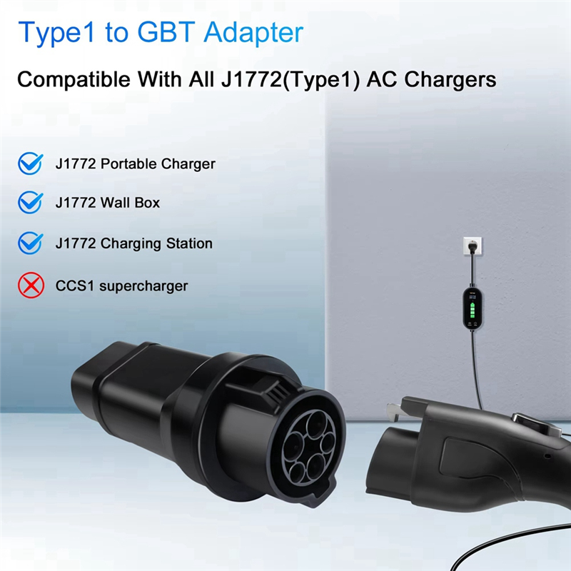 Adaptador tipo 1 para gbt 32a tipo 1 j1772 adaptador de carregador para carro elétrico versão chinesa com tomada de carregamento gb/t